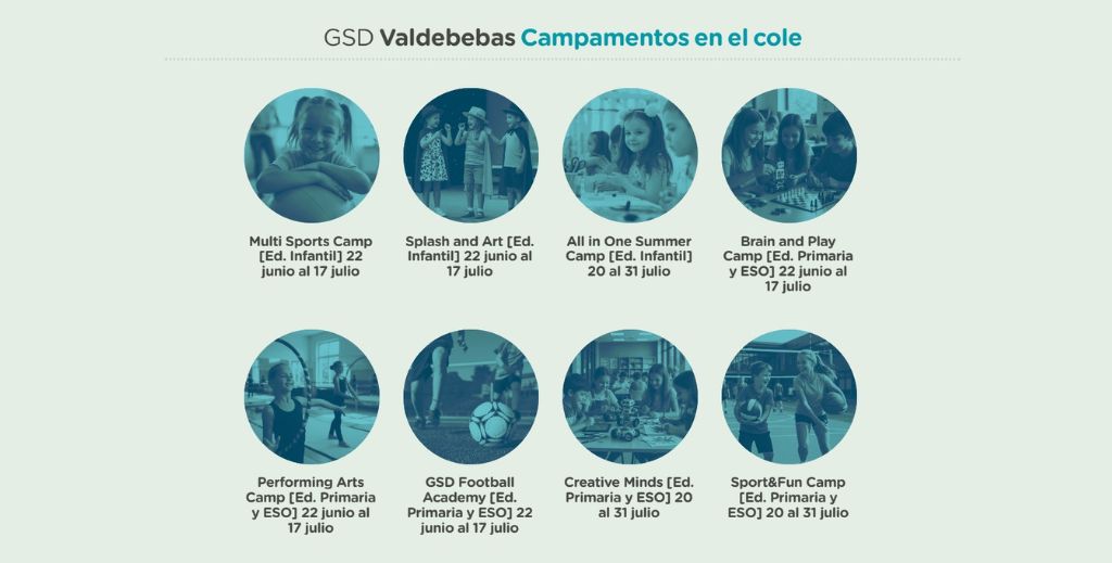 Para el verano 2026, GSD Educación cuenta con dos campamentos de naturaleza (Sendas del Riaza, en Segovia y La Vía Láctea, en Ávila), campamentos urbanos temáticos en todos los centros de la Comunidad de Madrid, un Summer Camp en su residencia internacional GSD IS Buitrago además de programas internacionales en Reino Unido, Irlanda, Estados Unidos y Australia: inmersión educativa, estancias en familias o Summer Camps internacionales.