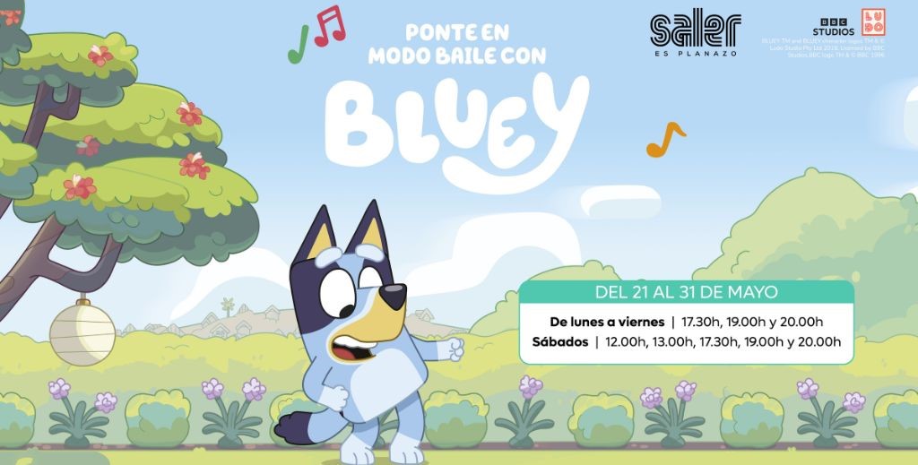 El Centro Comercial Saler de Valencia recibirá en exclusiva la visita de Bluey, la protagonista de la serie infantil de más éxito de los últimos años, que ofrecerá el show gratuito Ponte en modo baile con Bluey de Valencia, del 21 al 31 de mayo de 2025. Los más pequeños podrán disfrutar del evento con actuaciones musicales en formato mini teatro protagonizadas por la famosa estrella de la serie infantil de animación. Las actuaciones tendrán lugar en la plaza central de la planta baja del centro comercial. Cada show tendrá una duración aproximada de 25 minutos y durante todo el horario comercial se habilitará un divertido photocall que estará decorado con el icónico coche de la familia Heeler.