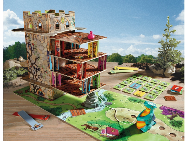 La Torre del Dragón: Los jugadores/as deben construir un andamio para subir a rescatar a una princesa antes de que llegue el dragón y destruya lo que con tanto esfuerzo han construido. Además fomenta la memoria y la psicomotricidad fina.