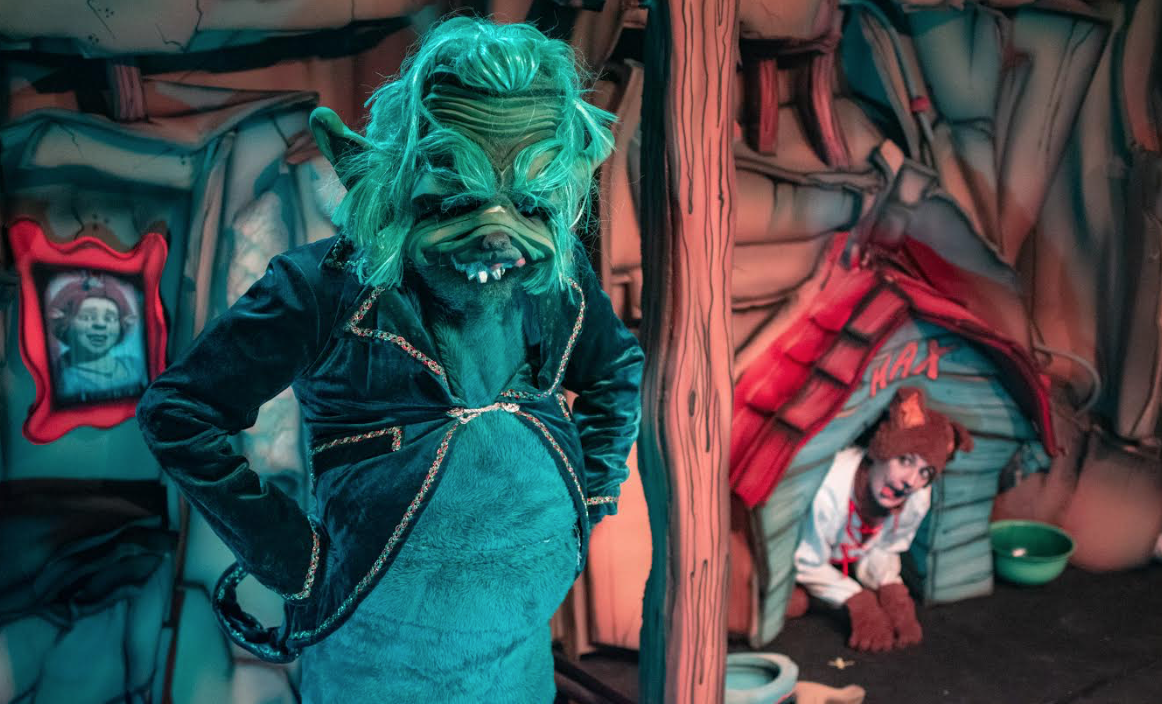 Sentarnos allí, en una sala llena y comenzar la obra fue como trasladarse a unas cuantas decenas de años más allá porque además del espacio, la obra también se remonta al siglo pasado, en concreto a 1957. El Grinch es un cuento del Dr Seuss, un autor clásico de la literatura infantil estadounidense (autor también del Lorax que hace tiempo que llegaba al cine) que en el año 2000 se hizo mundialmente famoso por la película de Universal Pictures pero que ya había deleitado con su historia de miles de niños a lo largo de los años.