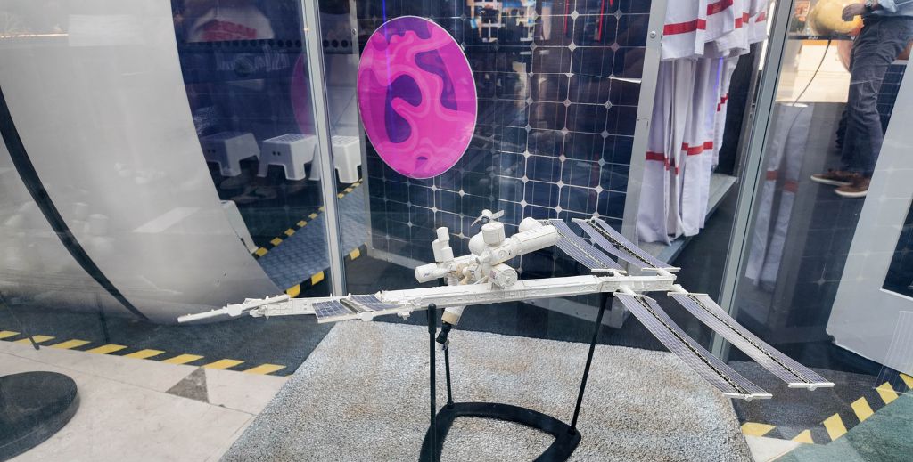 El evento se divide en cuatro espacios diferenciados: dos grandes reactores de naves espaciales donde se desarrollan las experiencias monitorizadas, una exposición de elementos espaciales como un vehículo lunar y un traje de astronauta, y una sección educativa con montajes de planetas y datos científicos.